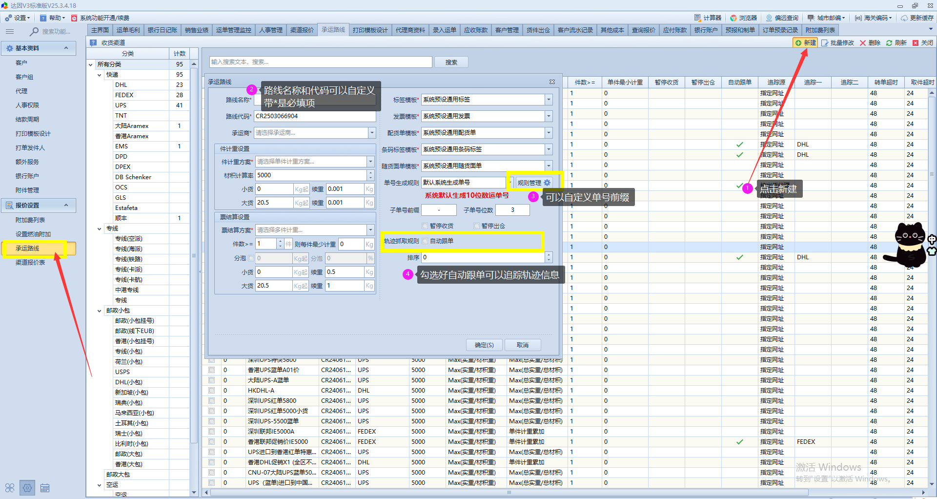 目录 搜索 系统简介功能列表查询报价订单预录记录到货测重记录录入运单扫描入仓出仓前分货货件出仓运单管理监控预报和制单财务应收账款应付账款其他成本客户账户流水代理账户流水销售业绩主营利润表银行日记账自定义账单模板基本资料-设置引用代理渠道加利润作为客户价代理对接客户资料人事权限打印模板设计打单发件人额外服务银行账户附加费列表设置燃油附加承运路线渠道报价渠道附加费及条件设置浏览器常用问题刚开通如何配置基础数据怎么对接代理打单如何删除对接的代理Fedex(新版RESTful接口)授权流程DHL Parcel DE 授权流程(v2版本)敦煌对接EMS对接UPS(新版RESTful接口)操作流程账单模板原始文件系统对外接口api微信公众号怎么绑定系统达因移动OA查价空白的解决方法公众号链接后缀客户端对接到微信公众号系统常见问题和快捷方式运单管理监控自定义教程速递管家获取API参数教程哲盟获取API参数教程如何在客户端下单视频教程 暂无相关搜索结果! 本文档使用 MinDoc 发布 承运路线 承运路线 视频演示新建承运路线,基本资料设置-承运路线功能-右上角新建带*是必填项 示例;DHL-设置文档更新时间: 2025-10-17 13:55 作者:dy13750292337