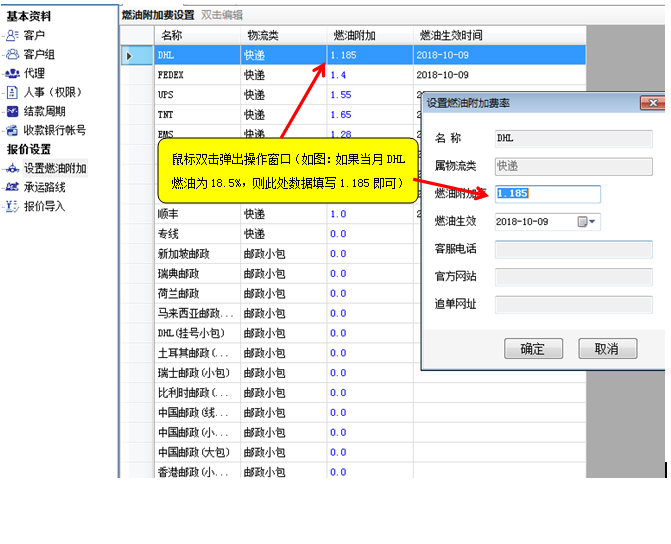 国际快递燃油经常变动,需要按时对系统的燃油进行设置