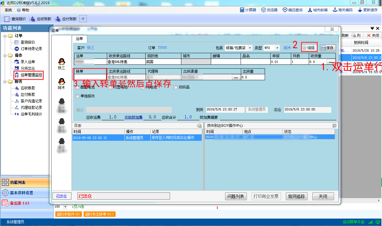 当出现以下提示,是因为变更了出货渠道,需要打开运单编辑界面输入转单
